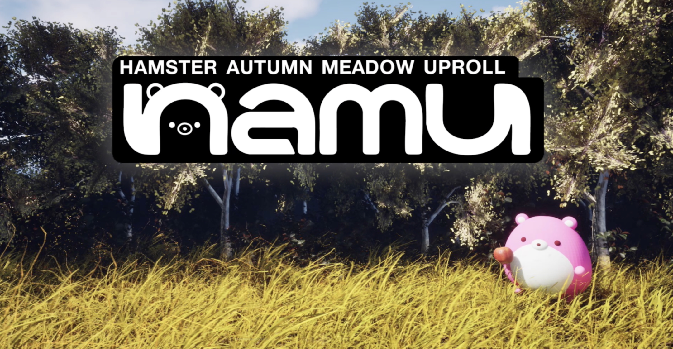 A round, rollable pink hamster collects food across an autumn meadow to prepare for winter